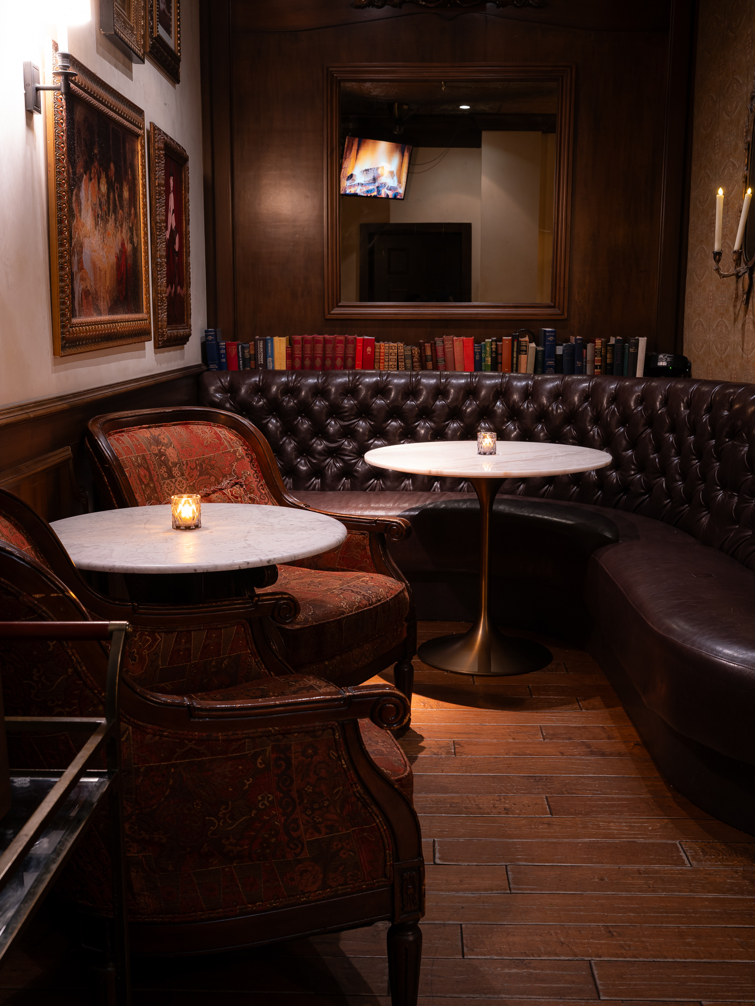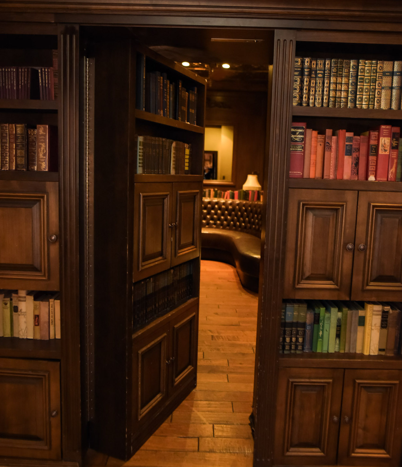 Experience the exclusivity of our private event space, hidden behind a bookshelf door, perfect for a more intimate gathering. Our private event servers will ensure your guests are pampered. Amenities, food, and beverage services can all be customized to fit a variety of event types, from corporate meetings to birthday parties and more.